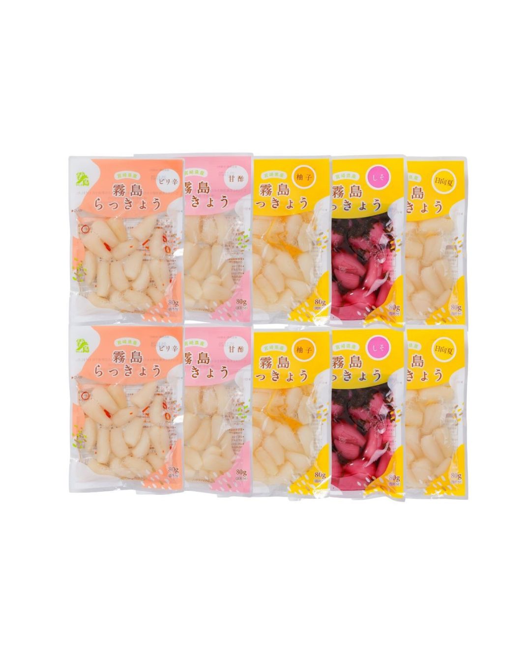 宮崎県産らっきょうをじっくり乳酸発酵させ旨味を引き出し、それぞれの味漬けをしたらっきょう5種類の味が楽しめるセットです。