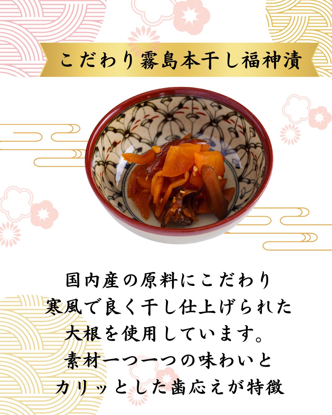 • 《こだわり干し福神漬》原材料名:干し大根(国産)、茄子、きゅうり、蓮根、生姜、なた豆、ごま、漬け原材料〔砂糖、しょうゆ、醸造酢、食塩〕/アミノ酸液、調味料(アミノ酸)、着色料(カラメル、紅麹、クチナシ)、酸味料、甘味料(ステビア、甘草)、香料(一部に小麦・大豆・ごまを含む)